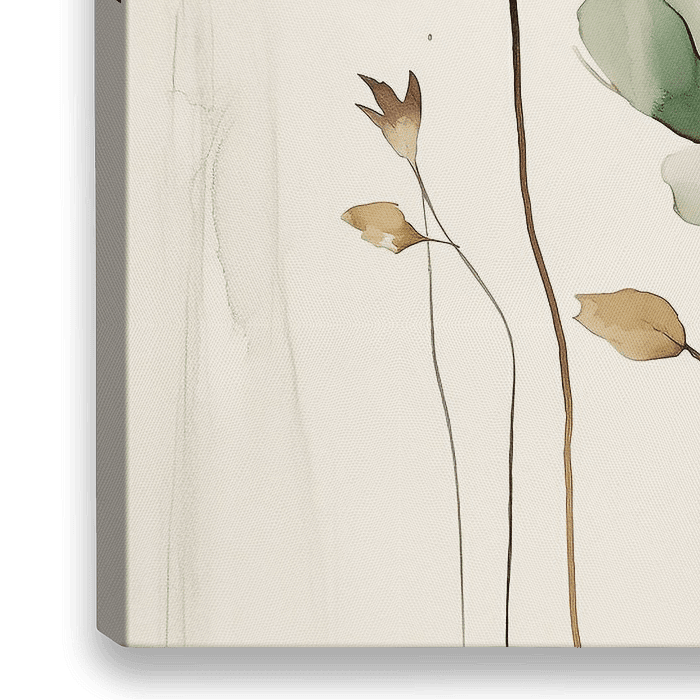 Aquarel van verfijnde bloemen in naturel kleuren. Groen, beige, wit, grijs en zwart. Passend bij diverse stijlen en trends. Simplistisch en gedetailleerd. Mooie kleurschakeringen. Prachtig bij botanisch, naturel, minimalistisch. Sweet embrace.