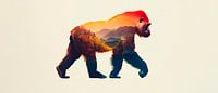 Een majestueuze gorilla, wiens silhouet wordt afgewisseld met levendige kleuren en indrukwekkende landschappen, straalt een krachtige aanwezigheid uit. Deze harmonieuze combinatie van natuur en wilde dieren nodigt uit tot dromen en is perfect voor een creatief kantoor of een inspirerende woonkamer, waar het energie en rust uitstraalt.
