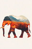 Een majestueuze olifant wandelt door een kleurrijk landschap waarin glooiende bergen en herfstbossen samensmelten. Deze harmonieuze combinatie van dier en natuur straalt rust en kracht uit. Ideaal voor de woonkamer, brengt het een kalmerende maar krachtige aanwezigheid in elke kamer en nodigt je uit om te dromen.