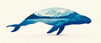 Een harmonieus samenspel van blauwe en groene tinten ontvouwt zich in deze artistieke compositie, waarin het majestueuze silhouet van een walvis samensmelt met een betoverend landschap. Hij glijdt majestueus door besneeuwde bergen en kalme wateren. Dit indrukwekkende kunstwerk is perfect voor in de woonkamer om een rustgevende, natuurlijke sfeer te creëren.