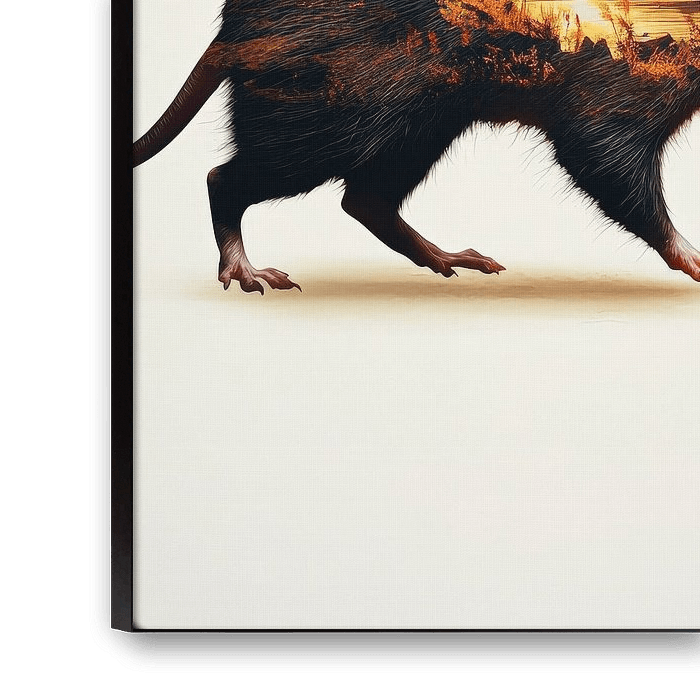 Een grillige samensmelting van natuur en wilde dieren ontvouwt zich hier in levendige kleuren en een warm lichtspel. Het wezen, half dier, half dromerig landschap, straalt een fascinerende verbinding met de natuur uit. Ideaal voor een creatief kantoor, het inspireert tot nieuwe ideeën en heeft tegelijkertijd een rustgevend effect. Een echte blikvanger!