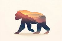 Het silhouet van een gorilla schrijdt krachtig en majestueus voor schilderachtige berglandschappen en zachte kleuren. De harmonieuze combinatie van natuur en dier belichaamt kracht en rust tegelijk. Dit artistieke werk voegt een creatief tintje toe aan elke woonkamer en inspireert tot nadenken over de majestueuze geest van de natuur.