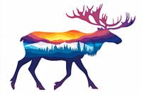 Deze artistieke dierenafbeelding combineert het majestueuze silhouet van een eland met levendige landschappen en zonsondergangskleuren. De vloeiende overgangen en diepe kleuren geven het motief een dromerige sfeer die perfect past in een woonkamer en uitnodigt om te ontspannen.
