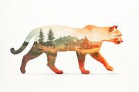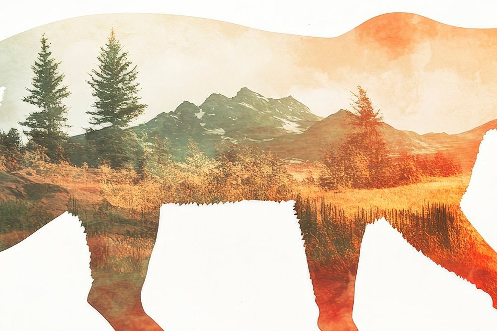 Een harmonieuze symbiose van natuur en dier is te zien in deze indrukwekkende afbeelding. Het silhouet van een majestueuze kat wordt levendig afgewisseld met lieflijke landschappen en hoge bomen, waardoor een kalme en uitnodigende sfeer ontstaat. Perfect voor de woonkamer, het brengt zowel kunst als een verbinding met de natuur in huis.