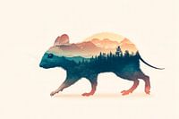 Hier ontvouwt zich een fascinerend samenspel van natuur en wilde dieren: Een tere muis dwaalt door een dromerig landschap waarin majestueuze bergen en dichte bossen samensmelten. Deze harmonieuze combinatie wekt de verbeelding en creëert een rustgevende sfeer, ideaal voor de woonkamer of een inspirerende hoek op kantoor.