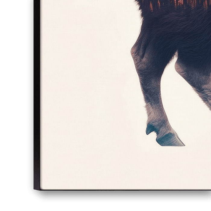 Een majestueuze bizon schrijdt door een dromerig landschap van bergen en bossen, alsof twee werelden samensmelten. Deze indrukwekkende afbeelding van de natuur in dierlijke vorm geeft elke kamer een rustige, aardse sfeer. Ideaal voor in de woonkamer of leeshoek om de verbeelding te stimuleren en een band met de wildernis te creëren.
