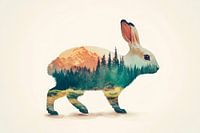 Een fascinerende haas te midden van een dromerig landschap van bossen en bergen geeft een gevoel van nabijheid tot de natuur. De zachte kleurovergangen en harmonieuze compositie nodigen uit om te dromen. Ideaal voor de slaapkamer, waar het rust en inspiratie brengt, terwijl de zachte aandacht voor detail verwondering opwekt.