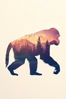 Een indrukwekkend samenspel van kracht en natuur ontvouwt zich hier, waar het silhouet van een majestueuze aap wordt omringd door een adembenemend berglandschap. De harmonieuze kleuren van de zonsondergang en de dichte bossen geven het beeld een fascinerende diepte. Ideaal voor de woonkamer om een levendige en inspirerende sfeer te…