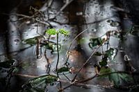 Groen plantje groeit uit het water. Concept: jong en groei.