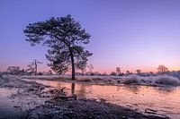 De opkomende zon geeft de lucht een bijzondere oranje blauwe paarse tint, waardoor alles in een magisch licht wordt gehuld. Door de lage temperaturen is het water veranderd in een laagje ijs…..wat is het toch heerlijk om met…