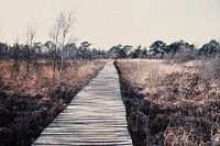 Een foto van een landschap van het natuurgebied Nationaal Park De Groote Peel op de grens van Noord-Brabant en Limburg. Deze foto is gemaakt in de winter aan het einde van de middag. Het heeft zachte en warme aardetinten bruin, beige, groen en oranje. Het past bij allerlei woonstijlen zoals Boheems, Scandinavisch, Natuurlijk Wonen, Landelijk Wonen en basic.