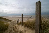 Tussen Noordwijk en Zandvoort is een drie kilometerlange strandstrook gereserveerd voor vogels en zeehonden. Het reservaat is gemarkeerd met imposante houten palen die van de duinenrij tot aan de branding zijn geplaatst. Deze foto is er een uit een serie die gemaakt is eind februari 2024 op een bewolkte dag met dramatische luchten. De foto is zowel in kleur als in zwart-wit te bestellen.