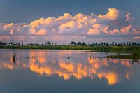Grote wolkenformaties reflecterend tijdens zonsondergang in het natuurgebied ’t Roegwold.