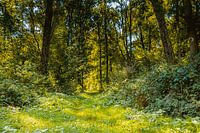 Dit bospad is volledig begroeid en lijkt vooral door de dieren in het bos zelf gebruikt te worden. Het zonlicht maakt van deze foto een magisch plaatje!