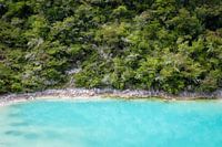 Verrast door dit schitterende blauwe meer tijdens een van onze hikes in de buurt van Rotorua.