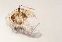 Een uitgebloeide bloem van de Hortensia is een soort natuurlijk kant, zo mooi om te zien. Dat kun jein de schaduw helemaal goed bekijken.