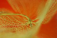 Een geheel uitgebloeid bloempje van de Hortensia toont haar fragiele persoonlijkheid op bijzondere wijze. Als een natuurlijk kantwerkje kan ze elke muur verleiden tot een kleurrijk bestaan. De warme oranjetinten met het subtiele ecru kantwerkje passen in menig interieur zowel thuis als in een woonwinkel of op kantoor.