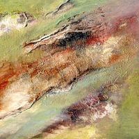 ...een spel met kleuren en materialen, jezelf laten drijven - leiden tot een subtiel spel van vormen, contrasten en vervormingen...scheuren en depressies tonen een spannend spectrum tussen worden en vergaan...