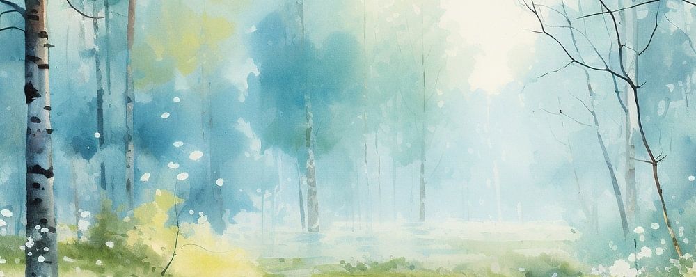 Details: bos, aquarel, natuur, groen, blauw, wit, bloemen, rust, serene, vrede, Natuurlijk wonen