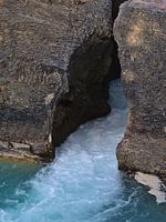 Water van een rivier stroomt door de rotsformatie Natural Bridge in het Yoho National Park in British Columbia, Canada in de Rocky Mountains met ruige kliffen.