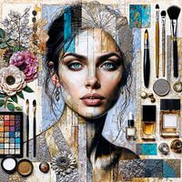 In mijn nieuwste kunstwerk, "Natuurlijke Schoonheid?", verken ik de delicate balans tussen natuurlijke esthetiek en kunstmatige verbeteringen. Het portret in het midden is een samensmelting van rauwe natuurlijke elementen en verfijnde make-upproducten. Dit contrast roept vragen op over wat we als "natuurlijk" beschouwen in onze moderne…