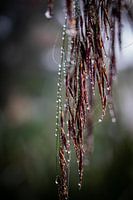 Dauwdruppels sieren aan de takken van de boom, geeft mooie natuurlijke sfeer weer.