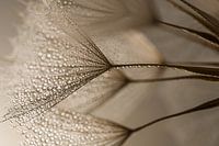 "Natuurlijke rust: Schitteren in het licht" is een macrofoto van een klein stukje van een Tragopogon (Morgenster). In deze foto zie je een pluisje wat aan de pluizenbol van deze bloem (Tragopogon) zit. Aan de pluisjes van de pluizenbol hangen hele kleine waterdruppeltjes. Doordat het licht prachtig op deze pluisjes valt, ontstaan er bij sommige druppeltjes schitteringen. Een spel van licht en donker wat heel natuurlijk aanvoelt en rustige sfeer creëert. Als je inzoomt op het werk kun je zien dat ik gekozen heb voor een geringe scherptediepte. De scherpte ligt op de druppels aan het steeltje in het midden. Alles wat in dat vlak ligt is scherp, en vanaf daar vervaagd alles geleidelijk wat er voor en erachter ligt. Dit geeft een hele rust effect in deze foto vind ik. Daarnaast zorgt dit ook voor een gevoel van diepte in het werk en komt de nadruk echt te liggen op het pluisje wat in het midden ligt. Als je goed kijkt naar de druppeltjes aan het steeltje zie je dat je de pluisjes van de pluizenbol terug ziet in de druppel!