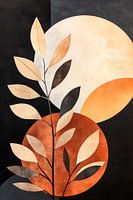Een harmonieus samenspel van zachte aardetinten en elegante vormen geeft dit kunstwerk een rustgevende uitstraling. De gestileerde bladeren en geometrische cirkels creëren een moderne flair die bijzonder goed past in een woonkamer of creatieve kantooromgeving. Perfect om natuurlijke elegantie toe te voegen aan een kamer!