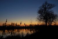 Silhouet aan de waterkant van de nieuwe put met een ondergaande zon.