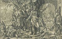 Nebukadnezar werpt de drie jongelingen in de vurige oven, Adriaen Thomasz. Key, 1554 - 1589Nebukadnezar laat Shadrach, Mesach en Abed-Nego in een brandende oven gooien.