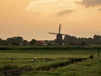 De Neckermolen, gezien vanaf de Jisperdijk, torent boven het vlakke landschap van het Wormer- en Jisperveld uit. De schapen zijn stille getuigen van een prachtige fluweelzachte gouden zonsopkomst in Wormerland.