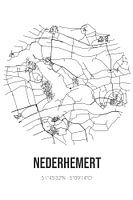 Zwart-witte landkaart, stratenplan of plattegrond van Nederhemert. Nederhemert is gelegen in de Betuwe, in de gemeente Zaltbommel, provincie Gelderland. Op de stadskaart zijn alle openbare wegen in Nederhemert opgenomen. Verder is de kaart voorzien van de coördinaten van het centrum van Nederhemert.