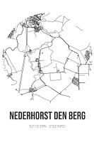 Zwart-witte landkaart, stratenplan of plattegrond van Nederhorst den Berg. Nederhorst den Berg is gelegen in de gemeente Wijdemeren, provincie Noord-Holland. Op de stadskaart zijn alle openbare wegen in Nederhorst den Berg opgenomen. Verder is de kaart voorzien van de coördinaten van het centrum van Nederhorst den Berg.