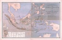 Wat nu Indonesië heet en vroeger Batavia, de Indische Archipel door de Nederlandse staat gekoloniseerde gebieden als Java, Sumatra, Borneo en Timor. Verder een stadsplattegrond van de hoofdstad, nu Jakarta. De Nederlandse kolonie is hier tot in detail in kaart gebracht met alle eilanden, zeeën en enkele buurlanden als Singapore,…
