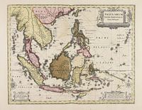 Op deze landkaart staan van Indonesië bijvoorbeeld Java, Borneo, Sumatra, Maleisië of Malakka of Malacca, Timor en de Filipijnen.