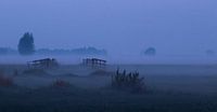 Deze foto heb ik gemaakt tijdens het blauwe uurtje voor zonsopkomst in de omgeving van Leerdam en Culemborg. Er hangt nog wat mist boven het weiland. De mist / nevel in combinatie met de kleur zorgt voor een spannende foto. Dit is een mooie foto voor behang.
