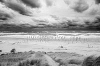 Het Nederlandse strand bij Petten, N-H op een winderige en bewolkte dag.