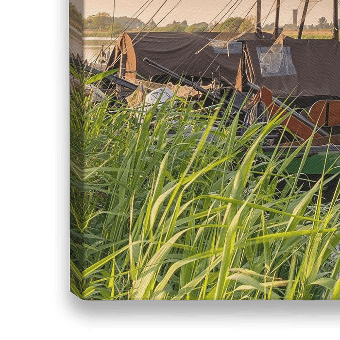 Tijdens de Nationale Molendag liep ik bij de molens van Kinderdijk (Zuid-Holland, Nederland). In de verte zag ik enkele masten, wat mijn nieuwsgierigheid wekte. Dichterbij gekomen zag ik dat het de zalmschouwen uit Werkendam (Noord-Brabant, Nederland) waren. Snel mijn spullen klaar gezet en gewacht op het mooie licht. Dit kwam al snel en kon ik dit Nederland tafereel fotograferen.