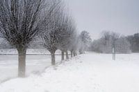 Na een koude nacht met mist zijn de bomen mooi wit door de aangevroren mist,zoals hier in het Gouwe bos tussen Waddinxveen en Boskoop,Nederland.