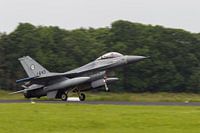 Met een felle gloed uit de naverbrander en een doffe dreun stijgt de F-16 van de Koninklijke Luchtmacht op vanaf de baan. In deze foto zie je het grijze gevechtstoestel net loskomen van de grond, de neus omhoog, het landingsgestel nog nét niet ingetrokken. De matte grijstinten van het toestel contrasteren subtiel met de achtergrondlucht, terwijl warmtegolven en condensstrepen achter de vleugels het moment extra kracht geven. Voor mij als fotograaf is dit een beeld vol snelheid, precisie en technisch vernuft. De F-16, al jarenlang het gezicht van de Nederlandse luchtverdediging, blijft indrukwekkend om te zien. Elk opstijgmoment is een demonstratie van kracht en controle, gevangen in één fractie van een seconde.