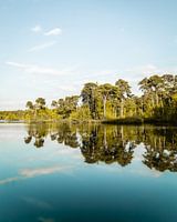 Een prachtige weerspiegeling foto van de Oisterwijkse Bossen & Vennen met blauwe en groene kleuren.