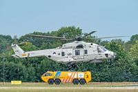 Een NH-90 helikopter van het Defensie Helikopter Commando nam tijdens de Wereldhavendagen deel aan een demonstratie samen met de Koninklijke Marine.