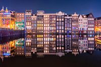 Huizen aan 'Natte Damrak' (Wet Damrak). De naam van de straat Damrak verwijst naar de dam in de Amstel (vandaar, Amsterdam).