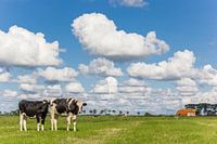 Nederlandse koeien in een weiland bij een klein boerderijtje in Groningen