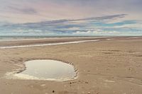 Waterpoeltje op het strand van Rockanje. Wolken naderen de kust met een zachte bries in de lucht.