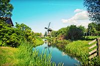 traditionele Nederlandse landschap met molen en rivier