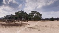 De bomen en het zand doet je geloven dat je in een ander wereld deel loopt. een rustgevende plaat met een mooie wolkendek.
