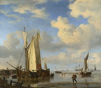 Hollandse schepen dicht bij laag water, en badende mannen, Willem van de Velde (1661)