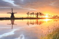 Nederlandse windmolen tijdens prachtige zonsopgang, Nederland