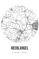 Zwart-witte landkaart, stratenplan of plattegrond van Neerlangel. Neerlangel is gelegen in de gemeente Oss, provincie Noord-Brabant. Op de stadskaart zijn alle openbare wegen in Neerlangel opgenomen. Verder is de kaart voorzien van de coördinaten van het centrum van Neerlangel.